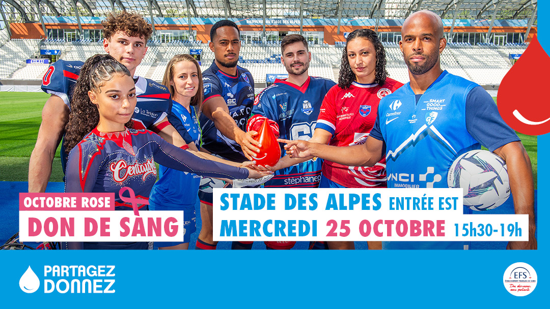 Mercredi 25 octobre, l’Établissement Français du Sang organisera une grande collecte de sang au Stade des Alpes pour Octobre Rose.