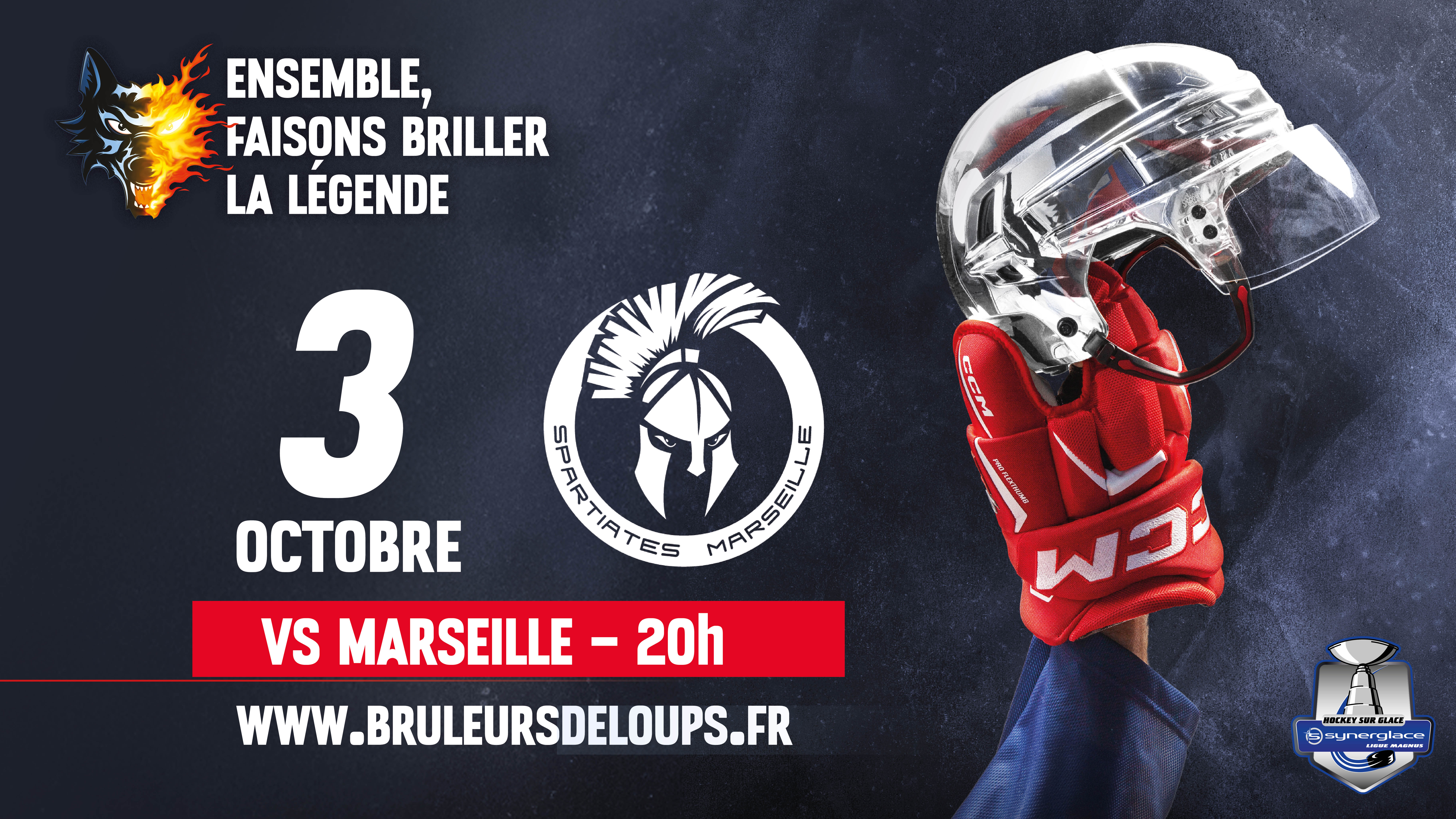 Ce soir, les Brûleurs de Loups accueillent les Spartiates de Marseille à 20h00 à la patinoire Polesud, dans le cadre de la 7ème journée de Synerglace Ligue Magnus. Cette rencontre est parrainée par le Groupe EDM.