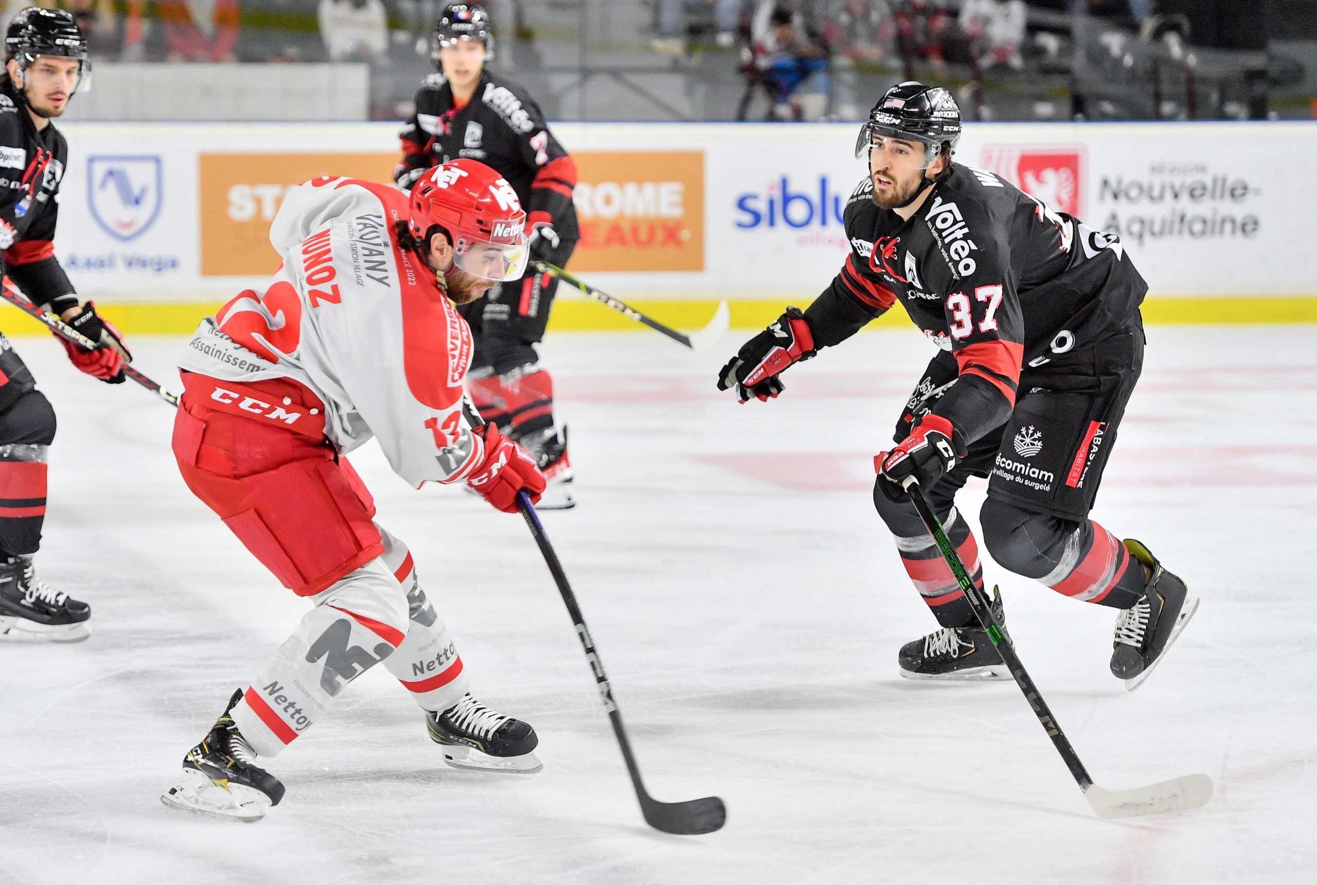 Dans un premier temps, les prolongations, fortement dominées par Bordeaux, voient Nicolas Deschamps délivrer le match en inscrivant un but à 5 secondes de la fin, offrant la victoire à Grenoble 4 à 3 face aux Boxers de Bordeaux.